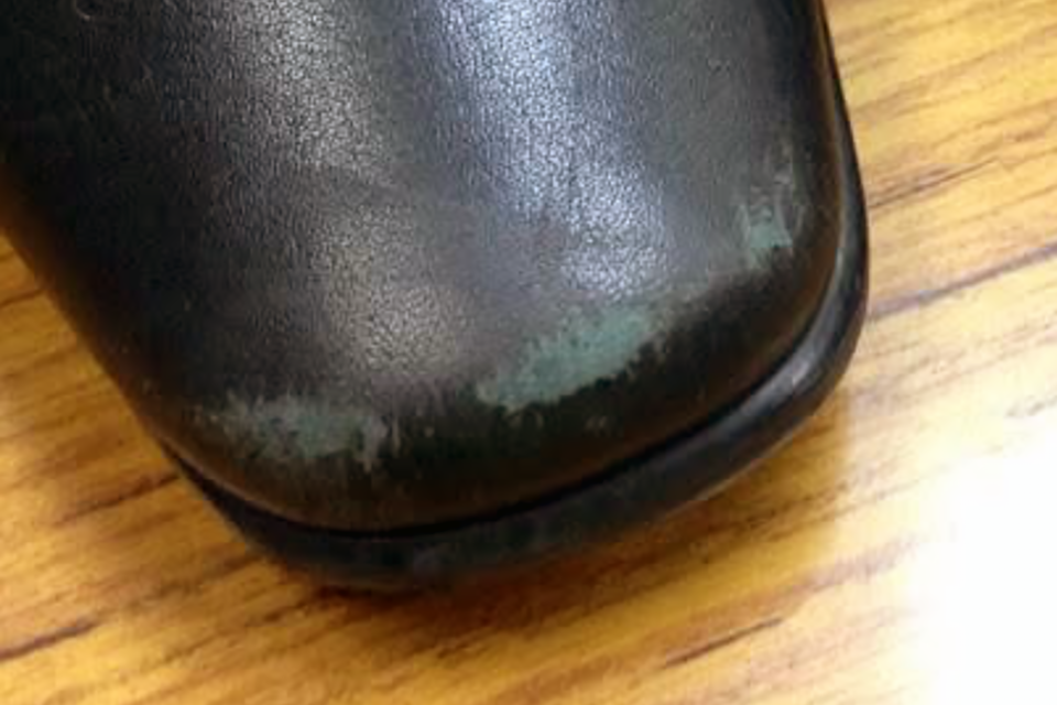 少々の色ハゲ、色あせ、キズのお直し。洗い後、部分的に色ハゲを補色します。